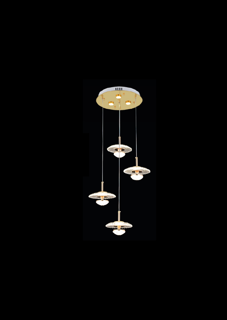 Zarif ve modern dokunuşları bir arada sunan bu 4’lü sarkıt avize, altın tonları ve kristal detaylarıyla lüksü yaşam alanlarınıza taşıyor. Yüksek tavanlı alanlarda şık bir merkez dekoru olarak kullanabileceğiniz bu model, estetik ve fonksiyonelliği buluşturur.