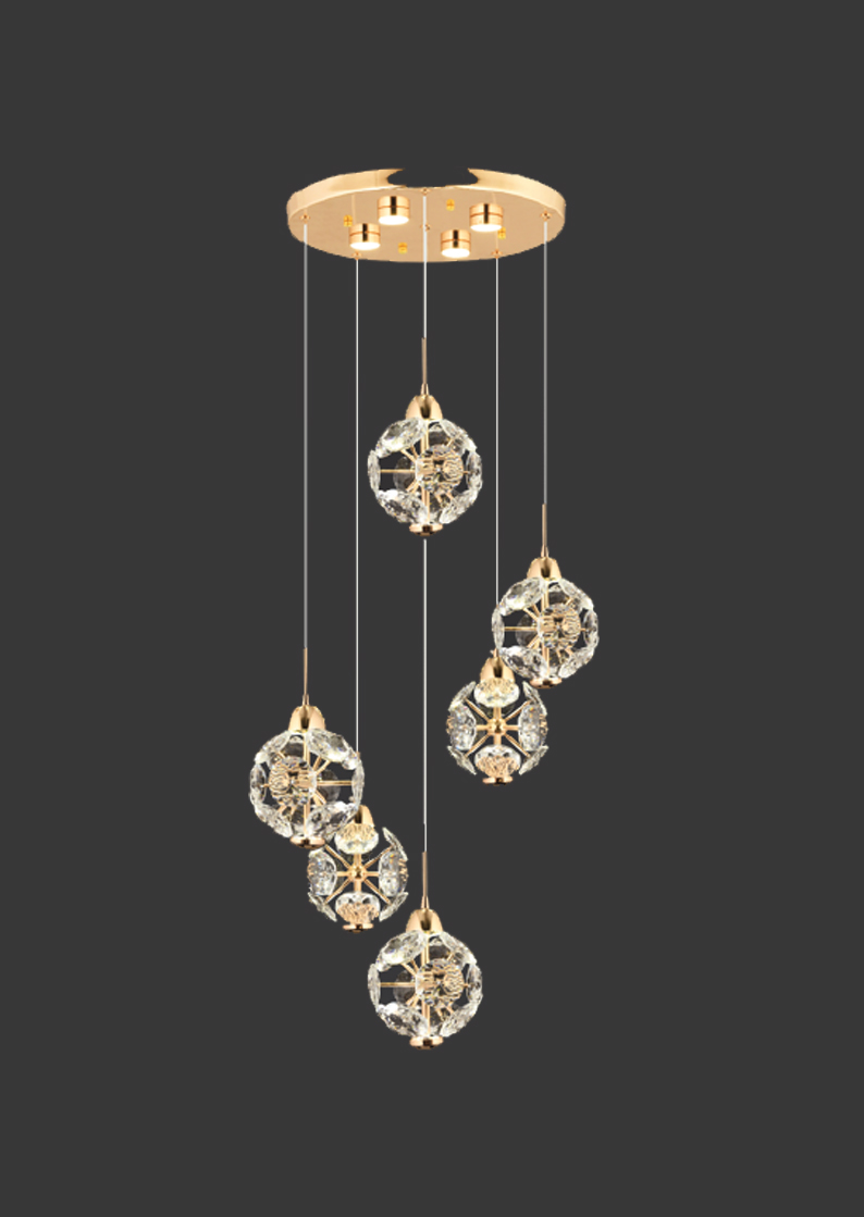 Armani Kristal Küre 6’lı Sarkıt Avize | Işıltının Minimal Hali