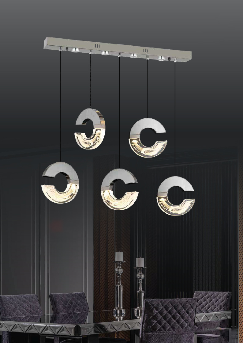 Şıklığın ve sadeliğin mükemmel uyumunu yansıtan 5’li yarım halka LED avize, yemek odası, toplantı alanı veya modern salon dekorasyonlarına sofistike bir hava katmak için tasarlandı. C şeklindeki LED halkaların yumuşak ışık yayılımı, mekanı hem sıcak hem de çağdaş gösterir.