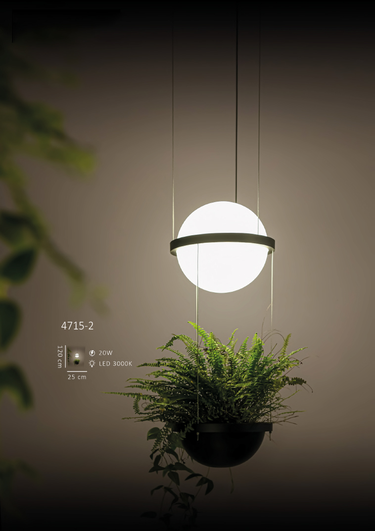 Bu model, modern ve minimalist bir tasarıma sahip, aydınlatma ve bitki saksısını bir araya getiren estetik bir sarkıt aydınlatma sistemidir. Özellikle iç mekanlarda, yüksek tavanlı alanlarda veya bitki köşelerinde dikkat çekici bir odak noktası oluşturmak için idealdir.