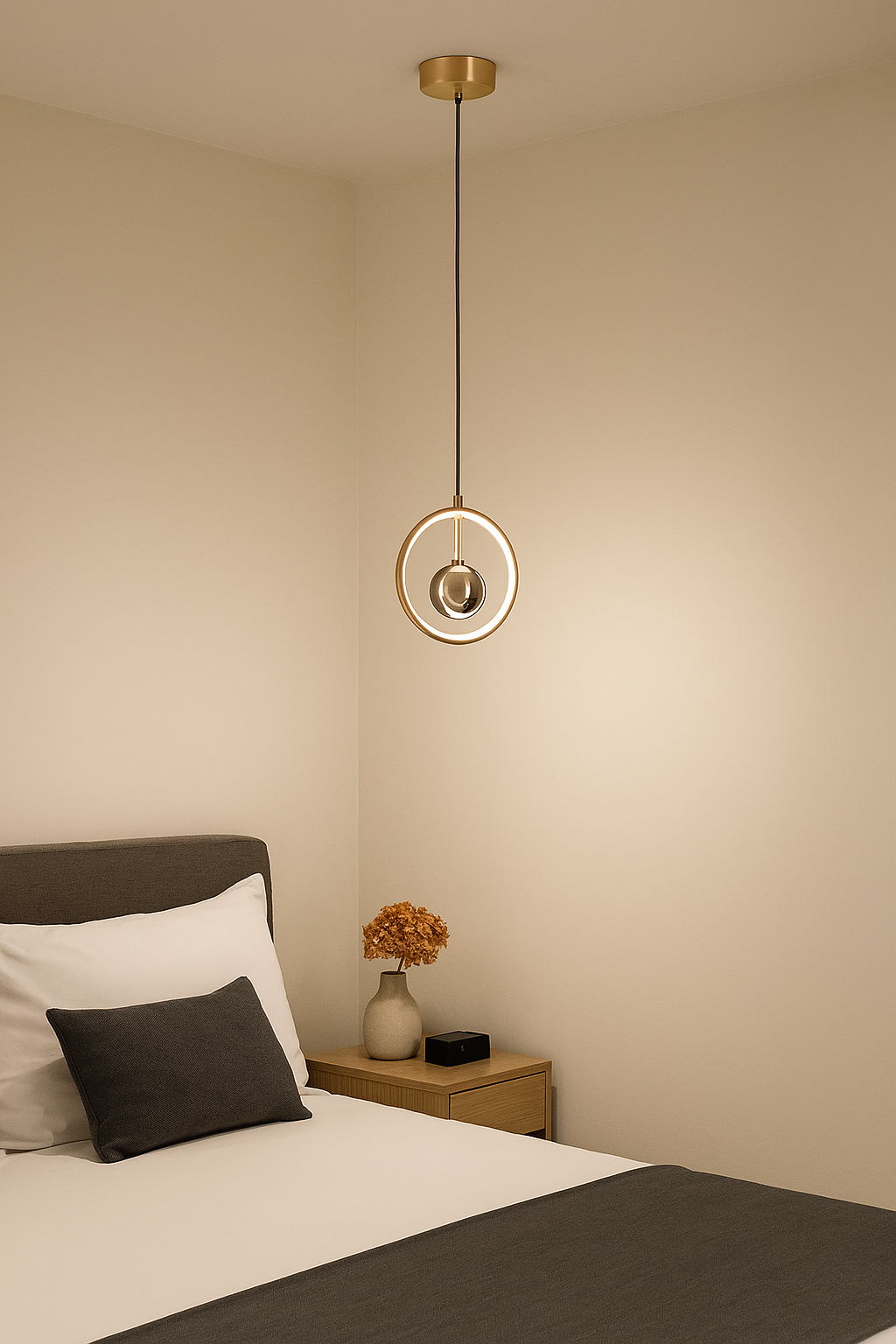 Göz alıcı rose gold rengiyle modern çizgileri birleştiren bu tekli halka LED avize, minimal ve şık bir aydınlatma arayanlar için harika bir seçim. Cam küre detayı ile sıcak ve yumuşak bir ışık sunarak mekâna davetkâr bir ambiyans kazandırır.